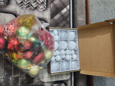 игрушки вместе с ёлкой отдам,белые шары 40 шт,разного размера,и цветные около 50 шт и многое другое.
