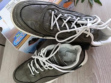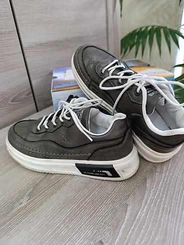 Удобные повседневные кроссовки со стильным «винтажным» серым верхом и контрастной белой подошвой. Подойдут к джинсам и casual-образам. Размер соответствует маркировке 36 (24 см). Сделано во Вьетнаме (информация на ярлыке).