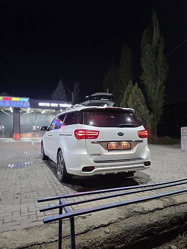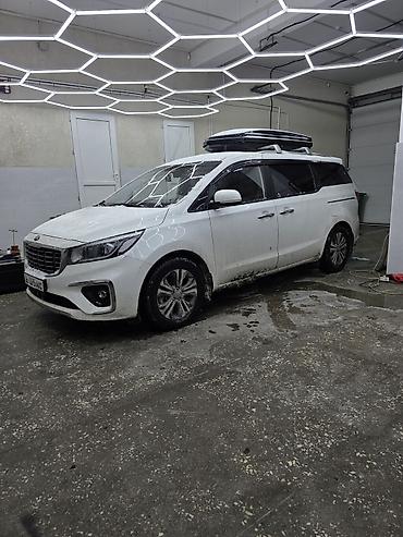 Номера и регион на фото: KG. Модель на фото — Kia Carnival текущего поколения с обновлённой оптикой и фирменной решёткой.