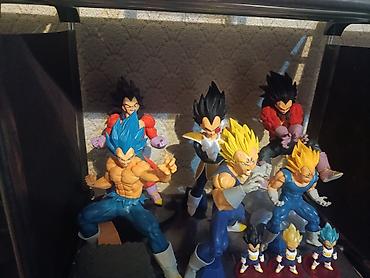 - Подборка статичных фигурок персонажей из вселенной Dragon Ball: несколько версий Веджиты (в том числе Super Saiyan, Super Saiyan Blue и GT), Гоку/Веджито в синих формах, Гохан/Транкс в моменте атаки с прозрачными “энергетическими” эффектами, мини-фигурки Веджиты разных трансформаций.
