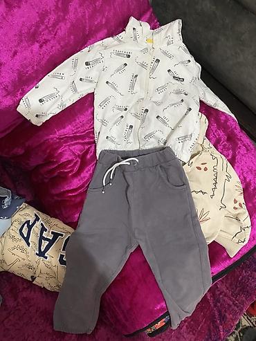 Набор детской одежды для мальчика, тёплый и повседневный размер 86 от Zara В комплект входят: - Стёганая куртка тёмно‑синего цвета со стойкой без капюшона, на кнопках спереди. Фигурная простёжка, ...