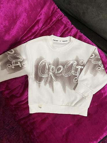 2) Свитшот белый с серым художественным принтом и надписью “Grec…”: