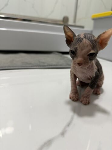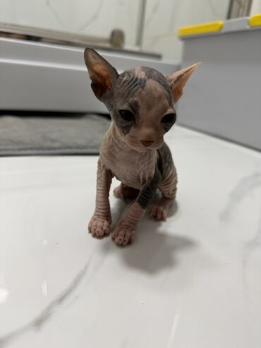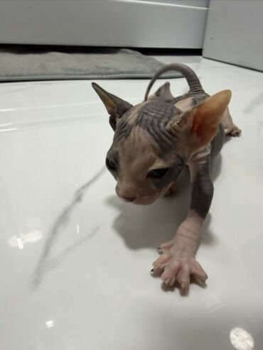 Котята канадского сфинкса - Порода: канадский сфинкс (лысые кошки с крупными ушами, выраженными складками кожи). - Окрас: серо-голубые оттенки, у некоторых выраженный «дымчатый» рисунок кожи. - В ...