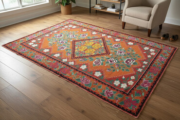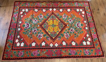 Туш кийиз -1965- жылы сайылган, размери- 4×2 метр, сапаты жогору, абдан дыкаттык менен сайылган кол иши