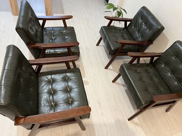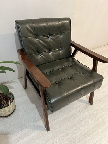 - Материал обивки: экокожа глубокого оливкового цвета.