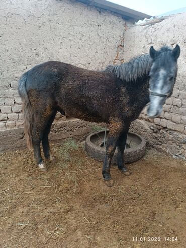 Жазга 3 жаш Лошадь (жеребец), масть темно-гнедая. На фото — сухой костяк, выраженная мускулатура, высокий рост, крепкие конечности с правильной постановкой, аккуратные копыта. Голова сухая, шея дл...