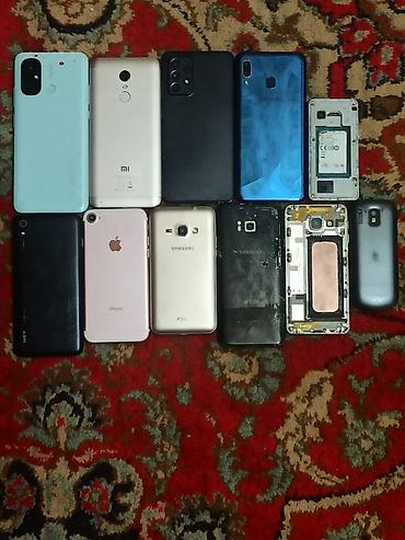 - Остальные телефоны — для запчастей/восстановления. В наборе разные модели: есть несколько Samsung (в том числе со снятыми крышками/без модулей), несколько Xiaomi/Redmi, пара iPhone, а также кнопочный Nokia и компактный сенсорный телефон. Видны разбитые экраны, отсутствующие задние крышки и элементы у части аппаратов.