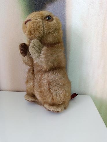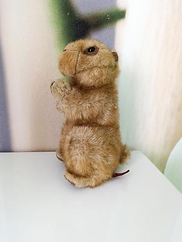 - Суслик из мягкого меха карамельного цвета, стоит на задних лапках, ушки и носик выполнены из короткого ворса, блестящие глазки-бусины.высота 25 см. Компактный размер, удобен для детских рук. Тканевая бирка на основании.Внутри есть приспособление...при надавливании пищит.