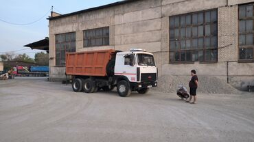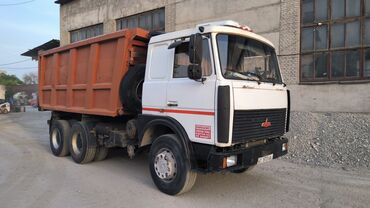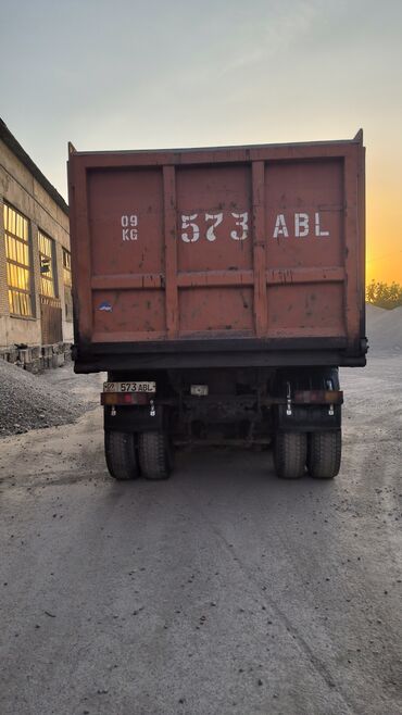 Самосвал с оранжевым кузовом, предназначенный для перевозки сыпучих материалов. Оснащен двойными задними колесами для улучшения устойчивости и грузоподъемности. Задние фонари и брызговики обеспечив...