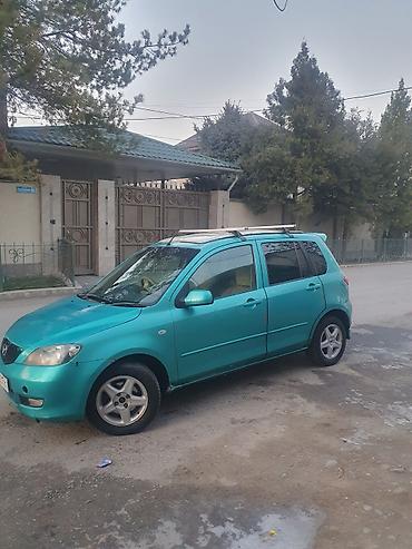 1.3 автомат 2003год Mazda Demio (Mazda2) — компактный 5‑дверный хэтчбек бирюзового цвета.