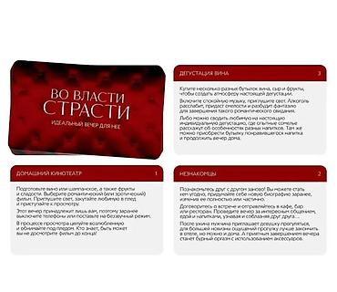 В наборе — 30 карточек-заданий, а значит 30 уникальных вечеров, которые мужчина может устроить для своей возлюбленной.