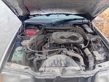 - Подкапотное пространство: рядный бензиновый мотор семейства M102/M103 с заводским воздушным фильтром-«шайбой», расширительный бачок, новый/свежий АКБ (красный корпус), шумо- и теплоизоляция на капоте.