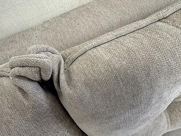 - Обивка: износостойкая ткань приятной бежево‑серой гаммы; фактура мелкий «ёлочкой». Ткань мягкая на ощупь и неброская, практично скрывает следы эксплуатации.