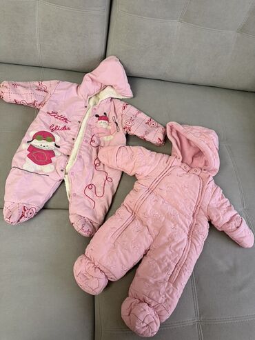 - 2 тёплых розовых комбинезона для малышей с капюшонами: