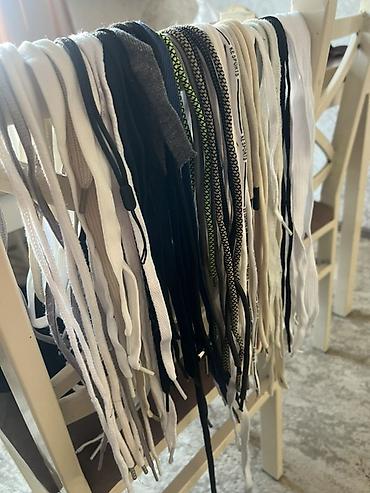 - замены шнурков в кроссовках, ботинках, худи и брючных кулисках;