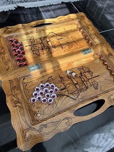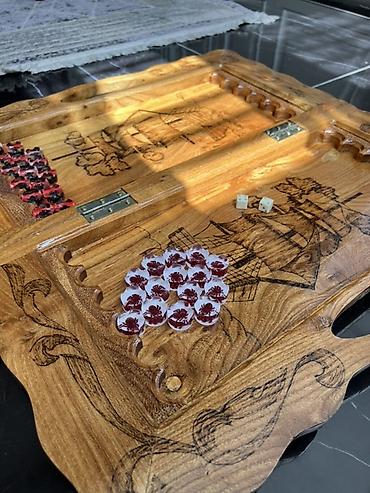 Нарды из цельного дерева с ручной резьбой и гравировкой.