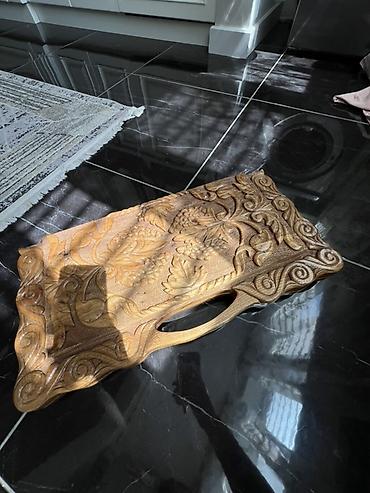 - Внешняя сторона: объемная резьба с растительным орнаментом (виноградная лоза).