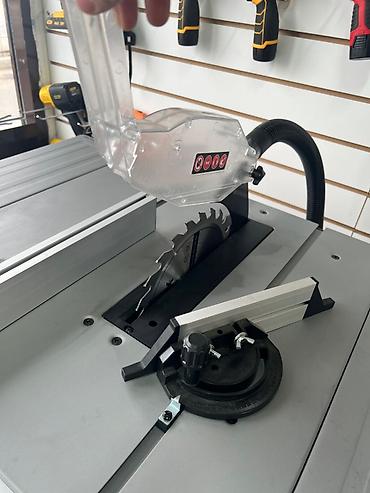 - Регулировки: поднятие/опускание диска и наклон с фронтальным маховиком; шкала угла наклона на корпусе.