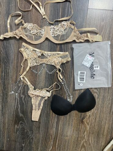 Комплект, Бюстгальтер, Бикини, С кружевом