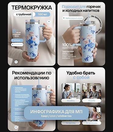 - Базовый курс «Инфографика для маркетплейсов»: оформление карточек для WB и Ozon, работа с мобильной инфографикой, создание карточек под разные ниши, поиск первых заказчиков.