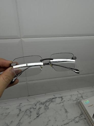 Очки для зрения в металлической оправе + футляр - Тип: очки с диоптрическими линзами - Оправа: тонкая металлическая, цвет — светлое серебро, прямоугольная форма - Линзы: прозрачные, с лёгким ж...
