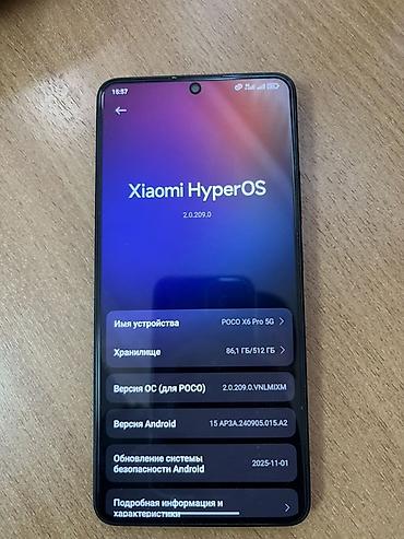Смартфон POCO X6 Pro 5G Основные характеристики: - Память: 256 ГБ встроенной - Сеть: поддержка 5G (маркировка на корпусе) - ОС: Xiaomi HyperOS, версия 2.0.209.0 (для POCO) - Android: 15 (сборка, у...