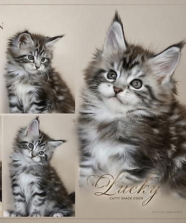 Породистые котята мейн-кун. Описание: - Окрас: дымчатый чёрный (smoke) и серебристый мрамор (silver classic tabby). - Типичные породные черты: крупный формат, мощный костяк, длинный пушистый хвост...