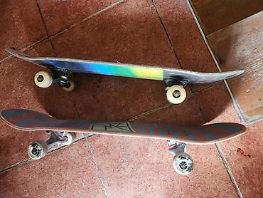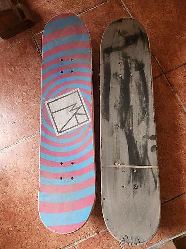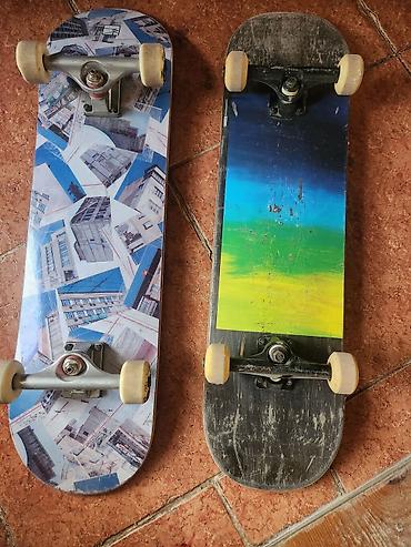 Продаю два скейтборда. чёрный европейского производства, красно-голубой местного. Оба бывшие в использовании, в хорошем состоянии.