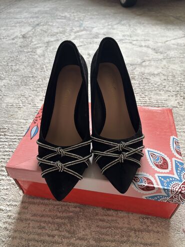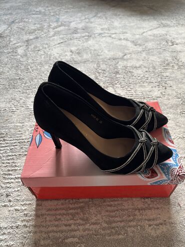Классические женские лодочки на шпильке - Цвет: черный, матовый - Форма носка: острый - Каблук: тонкая шпилька, ориентировочно 8–9 см - Верх: гладкий материал (эко-кожа) - Подкладка и стелька: син...