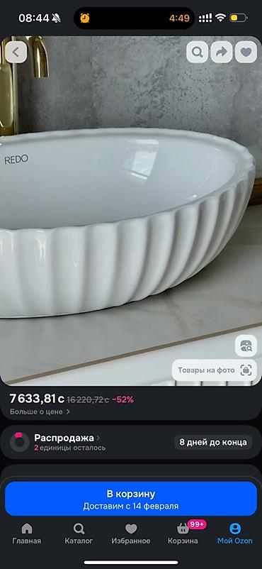Раковина накладная REDO, овальная