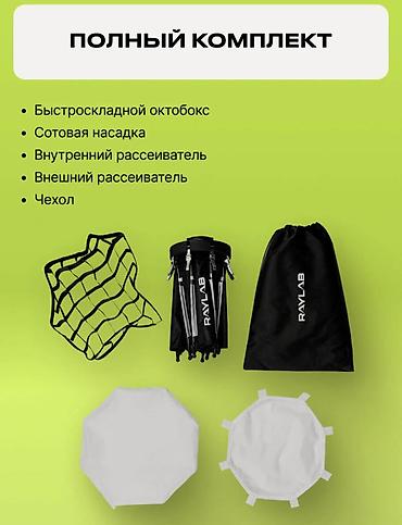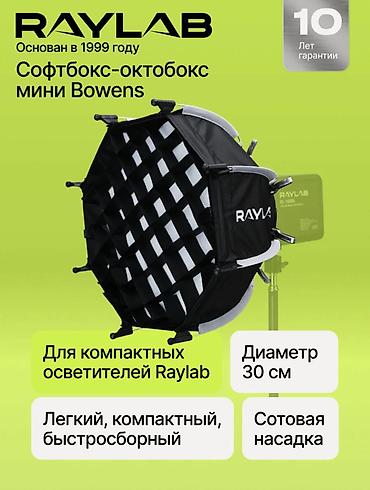 Компактный октабокс для светильников Raylab с байонетом Bowens. Диаметр 30 см. Легкий, быстрораскладывающийся, подходит для мобильных съемок и тесных пространств.