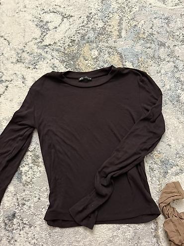 Лонг с длинным рукавом, черный - Силуэт: облегающий, с драпировкой по передней части и по бокам, визуально подчеркивает талию. Zara в М размере