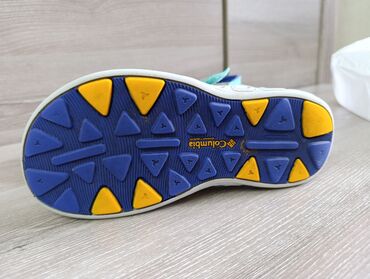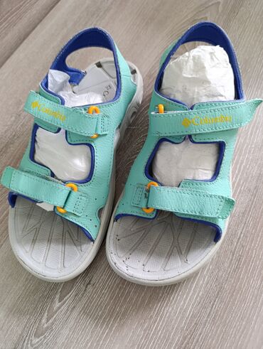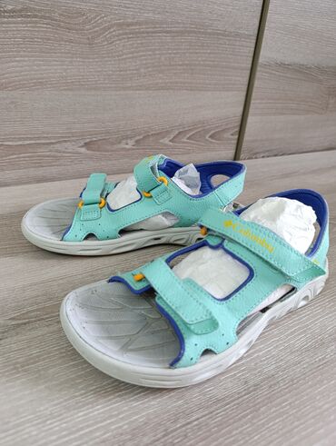 Универсальные сандалии Columbia в мятном цвете с контрастными синими и желтыми акцентами. Оснащены тремя регулируемыми ремешками на липучках, обеспечивающими надежную фиксацию и индивидуальную посадку. Мягкая подошва серого цвета с вентиляционными отверстиями по бокам гарантирует комфорт и циркуляцию воздуха. Прочная резиновая подошва синего цвета с желтыми треугольными вставками обеспечивает отличное сцепление с различными поверхностями. Подходят для активного отдыха, прогулок и повседневного использования в теплое время года. Материал верха: текстиль и синтетика; Материал подошвы: резина.