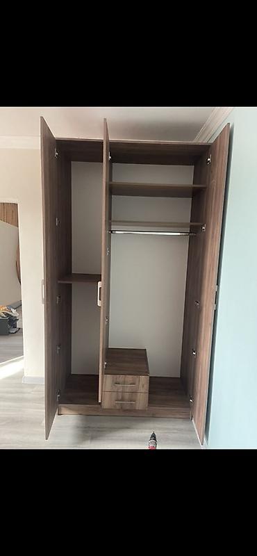 - Центральное отделение: штанга для одежды, над ней две полки для хранения.