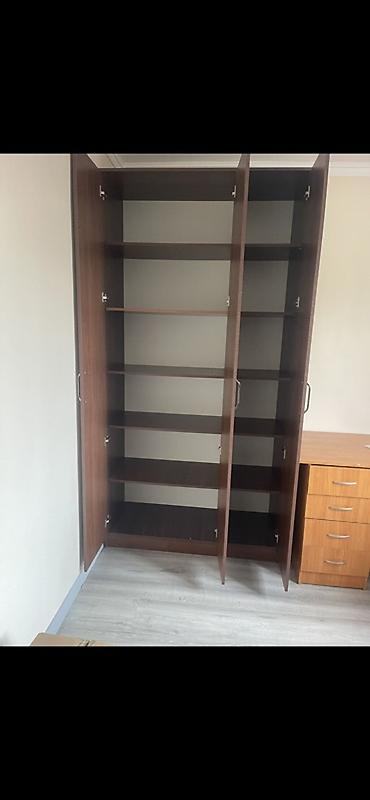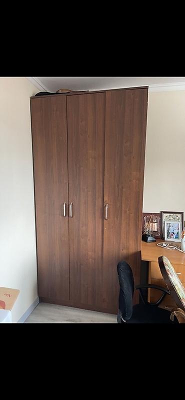 Трёхдверный шкаф для хранения, цвет тёмный орех.