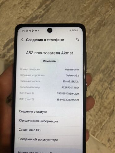Смартфон Samsung Galaxy A52 (модель SM‑A525F/DS), цвет черный.