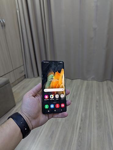 Смартфон в матовом черном цвете с фирменным модулем камер на задней панели. На экране установлены стандартные приложения Google, Galaxy Store, Яндекс и др. Отлично подходит для фото/видео, игр и работы благодаря флагманской производительности и дисплею 120 Гц.