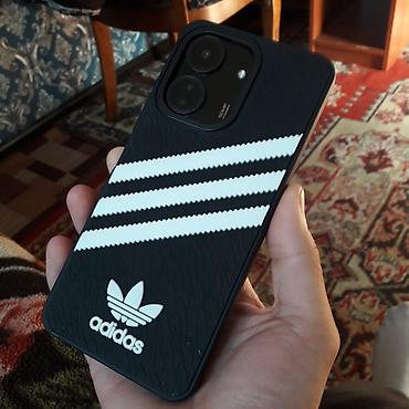 - Фирменный чехол-накладка в спортивном стиле с тремя полосками и логотипом Adidas; фактурная задняя поверхность, выступающие бортики для защиты камеры и экрана.