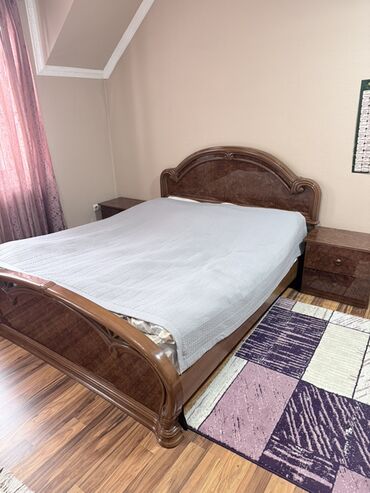 Гарнитур для спальни в классическом стиле с резным декором и мягкой