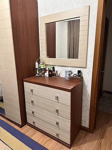 - Множество систем хранения: полки/штанга в шкафу, глубокие ящики в комоде, места для мелочей в тумбах.