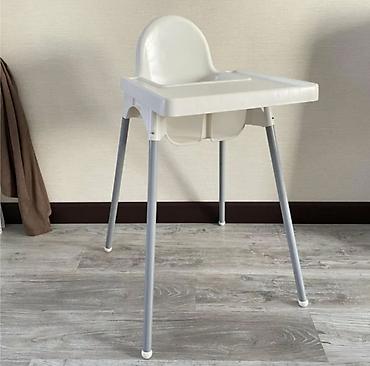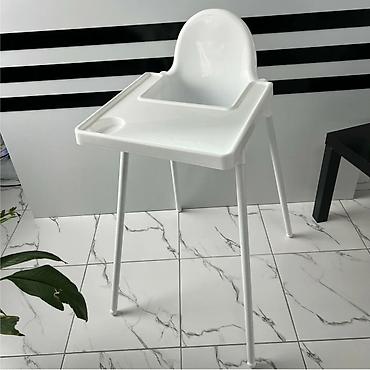 - Материалы: сиденье и поднос — прочный пластик, ножки — металл с нескользящими наконечниками.
