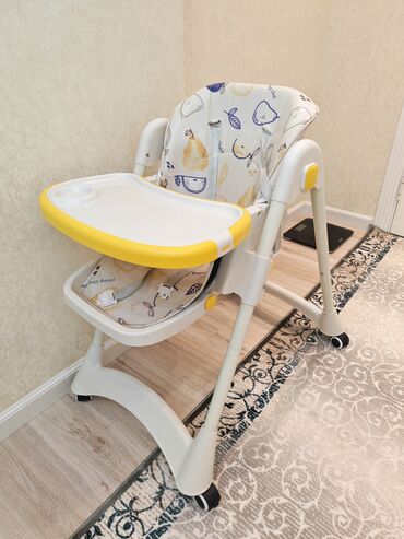 Детский стульчик для кормления - Комфортное сиденье с мягкой вставкой и ярким принтом, высокая спинка. Откидывается в лежачее положение - Съемный большой столик - Прочная металлическая рама на ус...