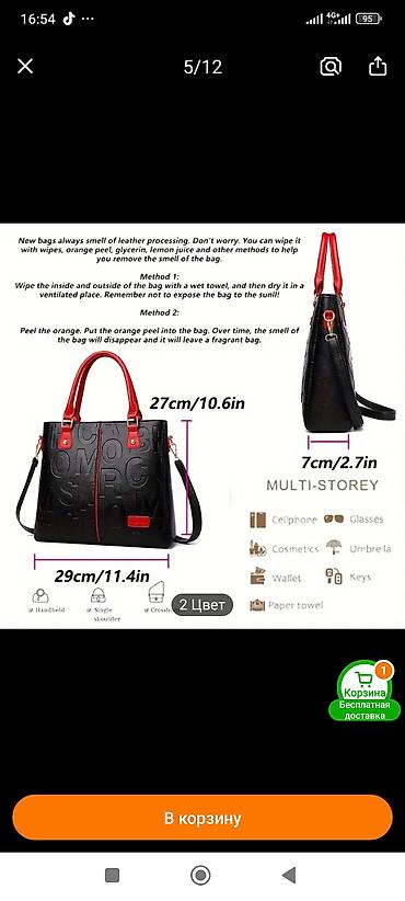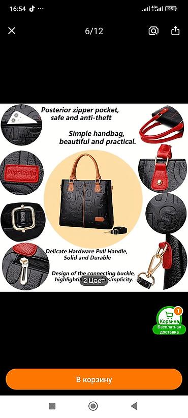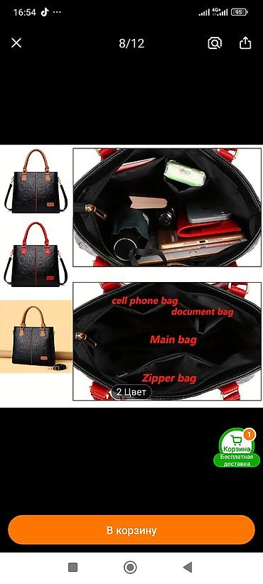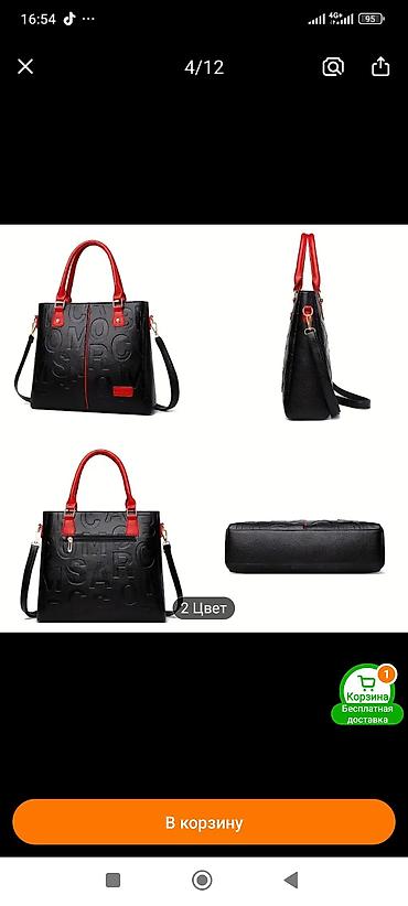 Сумка из экокожи,черная,размер 30на 30.есть длинный ремешок.Один отсек с внутренними карманами.Сумка совершенно новая .Подарили,но не подошёл фасон.