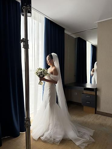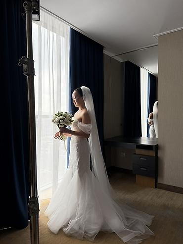 Свадебное платье, One size, Со шлейфом, Фатин, Пышное, Кружево, Б/у
