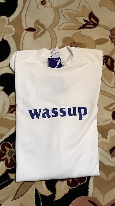 - Принт: вертикальный логотип “wassup” на груди (синий)