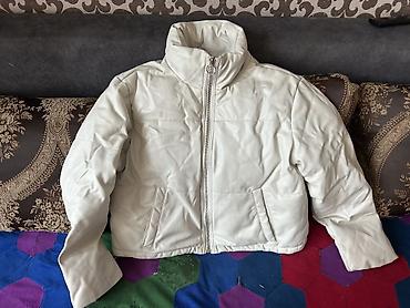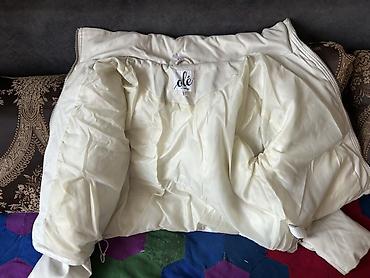 Укороченная женская куртка-пуховик цвета айвори (молочный).