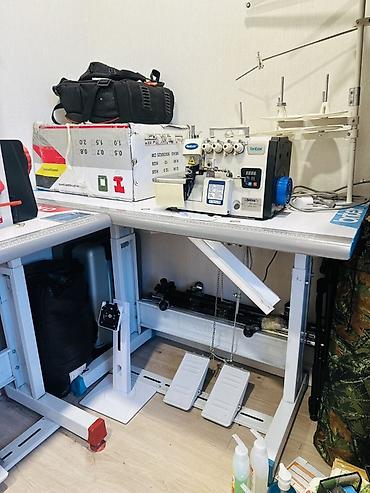 - Промышленный стол с двойной педалью, стойка для нескольких конусов нитей.