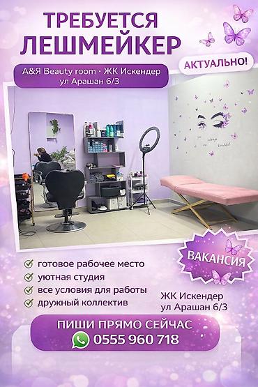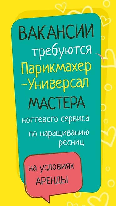 Вакансия: мастера в салон красоты «Ищем мастеров в салон красоты». Пишпек. Лев Толстой-Кривоносова. Подойдут специалисты индустрии красоты (парикмахеры, мастера маникюра/педикюра, бровисты, визажи...