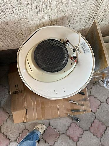 - Накопительный водонагреватель Ariston (вертикальный цилиндрический бак). На корпусе расположена круглая сервисная крышка снизу, наверху — панель с патрубками подачи/выхода воды (синий/красный), электрический кабель выведен. Компактная «башенная» форма удобна для установки в санузле или подсобном помещении. Подходит для организации горячей воды в квартире, доме или на даче. Рядом на фото — крепёж/анкеры для монтажа на стену. 100л , рабочий!!!