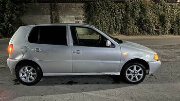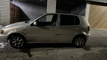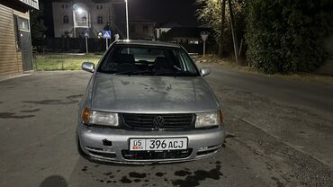 Volkswagen Polo седан, жёлтый цвет, на киргизских номерах (KG, 093 AKZ). Кузов: 4-дверный, тонировка задних стёкол, антенный штырь на крыше, пластиковые колпаки колес, чёрная накладка на кромке к...